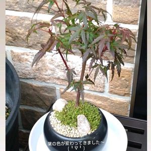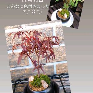 おはようございます😃 小さいモミジの苗木も紅葉🍁した🤩