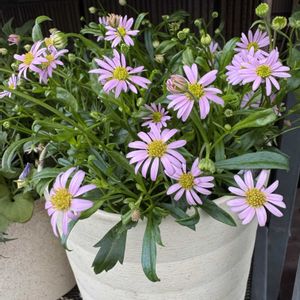 姫小菊(ブラキカム)✨ 見切り品の多年草を見かけるとその場から動けなくなってしまいます いろんな色があってテンション上がりましたが、ひとつで我慢した!薄ピンクカワイイ!😆