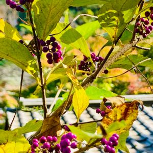 お墓参りの帰りに実家に寄りました 玄関わきにあった紫式部💜 粒々のグラデーションが可愛い💜 秋になりましたね〜💜