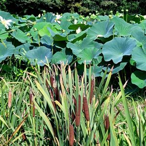 【 ガマ ( 蒲 ) 】 出雲の神話 『 因幡(いなば)の白兎 』に登場し、池や沼地の湿地帯に自生する植物 穴虫の郷にハスの花をみに訪れ、ガマとも出会う事ができました。 今日のお花です
