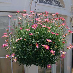 【PW マーガレット ストロベリーホイップ】 ギャザリング ハンギング ハンギング定植して もう少しで 2ヶ月になりますね 多分 3月26日かな? そこら辺 雨でしかも凄い強風 海の近くなので 風も強まってる感じかな? 慌てて室内に移動したのですが まっデカいのであちこちぶつけて 枝何本か折れたり ピンチ✂️したと思えば良いか😅