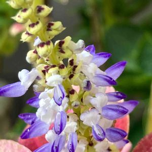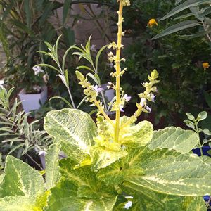 我が家のコリウスに花が咲きました。 葉の色は様々でも花の色は😅😂⁉️ 私の所は青色花だけです。🤔