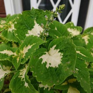 コリウス 緑💚の方も花が来た。 花は白かと思いきや、紫💜コリウスと同じ紫色の花でした。