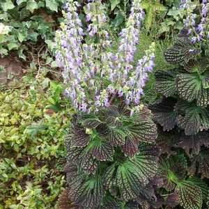 おはようございます。 蔵元のカフェに行った時に、コリウスの花が咲いていました🎵 紫色のかわいいお花🌼です。