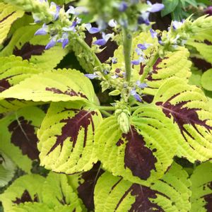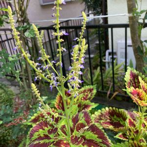 コリウス 今年お迎えしたコリウスは とてもビッグになりました(*゚0゚)ワーオ 風が強く吹くと倒れてしまって その度に、枝を骨折😵🙀😱 ちなみに大きさは、 幅90cm×奥行80cm×高さ70cm でした👍 お花が💙💜系なので、 🏷付けさせて頂きます🙏(ノ≧ڡ≦)☆テヘ