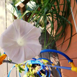 1年生が毎年持って帰るあさがお 今朝咲いてた🎵淡い、うす~い紫?でした😆