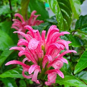 🪸サンゴバナ(珊瑚花)🪸🦩🦩 キツネノマゴ科キツネノマゴ属(ジャスティシア属)でブラジル原産 別名 Flamingo plantフラミンゴ プランツ🦩 鳥のフラミンゴの首から頭に似ていることが由来 ご近所の庭で咲いてたピンク色の花 初めて見た〜♪ 調べたら🔍 サンゴバナ🪸という名前が出てきた 先っちょがクルンとして可愛い🩷 その下に見える点々‥は、蕊かなぁ 🏷️19日はピンクの日!