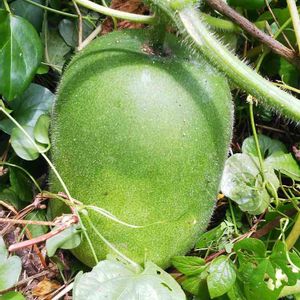 姫冬瓜です 苗を2本買ったら 現在10平方メートル以上広がってます♪ もう50個ぐらい採れました♪ まだまだ実ってます♪