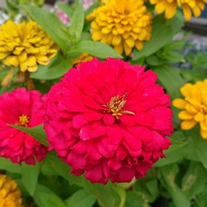 今日はお昼過ぎまで☁️が多かったけど、夕方には青空💙が拡がり、綺麗な夕焼け🌆が見れました☺️ ☔の1日だった昨日から一転、嬉しい気持ち🎶 そんな心を🌼picで表すとこんな感じかな✨ 赤も黄色もぶりぶりのポンポン咲きです❤️💛