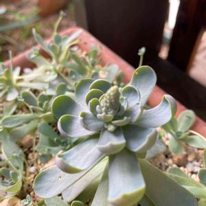 渋〜い色だけどお名前は白雪爪蓮華。 確かに中心は白っぽい(๑°ㅁ°๑) 子株が大きくなってきた〜(*^-^*)
