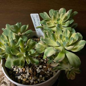 昨日お迎えしたアエオニウム 室内でパチリ📸 生産者の方のタグによるとスノーフレイク うっすらピンクも入ってていい感じです (๑˃̵ᴗ˂̵)و
