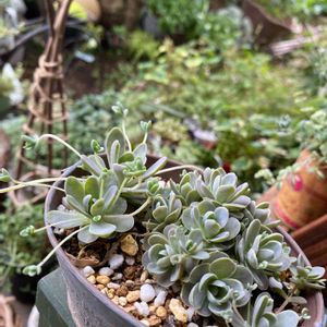 この雨続きでモコモコちゃんに(◦'︶'◦)♬ この子はグレーっぽくないんだけど子持ち蓮華にも色々あるのかなぁ꒰ღ˘◡˘ற꒱✯*・
