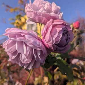 今日の薔薇たち🌹 ①上の方でルリール🌹綺麗に咲いてました♥ ②玄関前のフィネス🌹1日でチリチリになっちゃうかな💦 ③パウルクレー🌹咲き始めると次々よく咲いてくれる子♥ ④ニューウェーブ🌹色味が春とは違います。秋はきれいかなうれしい☺ スマホを昨日変えたばかりで使いこなせてないてす😥💦