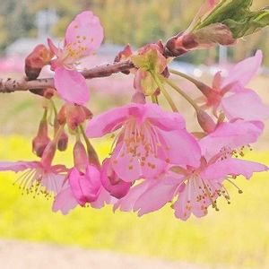 おはようございます🌤 今日の🌼 だいぶ前ですが、浜松の東大山で👀📷 住民が手作りで川沿い約1kmにわたり河津桜の🌳を400本植えたのが始まり🥰 菜の花とのコラボもあり、とてもステキな🌸並木でした✨