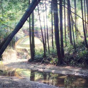 新緑と片眼鏡(モノクル)橋 熊野古道 栃原〜川添の眼鏡橋。 今は片方潰されてていて眼鏡になっていません。 木立の中に見える橋が綺麗だったので🤳。
