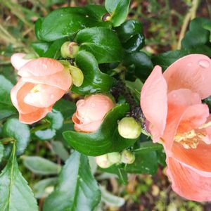 おはようございます☀ 季節外れのボケの花が咲きました❇️サーモンピンク色コロンと可愛い(´ ▽`).。o♪♪ ボケ