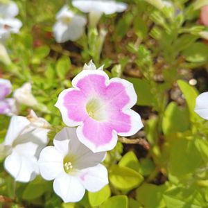 サフィニアアート 先日行った富士見パノラマリゾートの入り口に植えてありました。 とっても可愛いお花です。 白いお花にもちょっぴりピンク色。 🏷 ピンクワールドヘようこそ