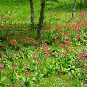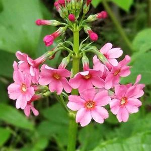 九輪草 (クリンソウ) 茎を伸ばしながら 下から段になって次々と咲く。 輪生する花の 幾段にもなった様子が お寺の五重塔などの 頂上にある柱の飾り 「九輪」のようなので この名になったそう。 ここではピンクのクリンソウしか見られませんでした。