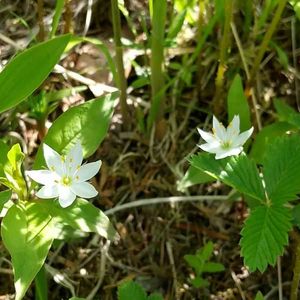 ツマトリソウ 山地の樹の下に生え、葉は広く茎の上部に4〜5枚付け、茎の上に白い小さな花をひとつ咲かせます。 花びらは7枚です。 褄取とは和服の褄を手でつまんで持ち上げる事で、その時に着物の赤い裏地が見える様に、花の縁取りが見られら事から名付けられたそうです。