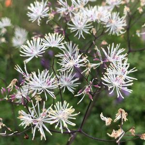 千手岩菲。入笠山テイ沢での初見の花。ウィキペディアをはじめ、日光の中禅寺湖西岸にある千手ヶ浜から名前がつけられた説を採っているところが多い。 例のごとく『野草の名前』は、明治19年日光のセンジュガンピ標本から名付けられた説より前の、江戸後期の『草木図説』にすでに名前と図版があり、千手ヶ浜説をはっきり否定している。 千手は、花弁の縁がギザギザになっている形が千手観音の手に似ているところからの由来。これは、『千手ヶ浜説』より『千手観音説』が有力だと思う。岩菲は中国渡来のセンノウに似ているところから。 うす暗い渓流沿いに、蕊まで白いセンジュガンピがあちこちにつつましく咲いていると、とても癒される。何と言っても千の手で庶民を救済してくれる、慈悲深い千手観音菩薩と逢えたような錯覚は格別である。センジュガンピを見ると、響(どよ)めく渓流の音が一瞬消えるような気がする。