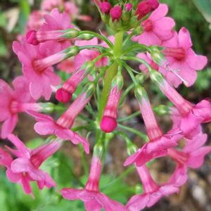 九輪草。引き続き、入笠山。ここは標高が高いことで、6月末でも満開。湿原や渓流があり、一部、見事に群生化していた。 クリンソウは直立した花茎で、ピンクの色といい洋種っぽい目立ち方をしていても、れっきとした日本在来種。そのため、寺院に由来した名前も当を得ている。 仏塔の屋根の最上部にある装飾部分、これを相輪と言い、7つの部分からできている。上から、宝珠(ほうしゅ)、竜車、水煙、宝輪…(以下、略)。宝輪は九つの鉄輪がついていて、ここが九輪。 クリンソウは、花が輪になって段咲きし、4〜5段ある。実際には九段ないのに、イメージはわかる。日光の九輪沢から命名された説もあると「野草の名前」(山と渓谷社)には紹介されていた。でも、仏塔由来の名前のほうがストンと合点がいく。 あざやかな朱色のレンゲツツジやアヤメと競演して、どこから見てもこちらを見てくれているクリンソウの花は、所作が歌舞伎役者の目の配り方と同じである。 山野草のなかでもスター性を感じる。