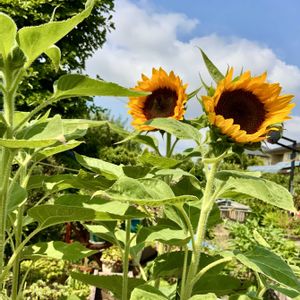 おはようございますo(^▽^)o 今日の我が家の庭のひまわりさん🌻🌻🌻です♪(๑ᴖ◡ᴖ๑)♪💛💛💛🧡🧡🤎🧡🧡💚 🏷️ 黄色いお花大好き協会 🏷️ 幸せの黄色いお花 🏷️ オレンジ色の花も好き 🏷️ LOVE♡ひまわり 大きなひまわりさん2輪大きく咲きました♪(๑ᴖ◡ᴖ๑)♪🌻🌻 間引きしたミニひまわり夏物語さん違う鉢植えに植えてそのお花も咲きました♪(๑ᴖ◡ᴖ๑)♪🌻🌻🌻 夏本番ですね٩(๑❛ᴗ❛๑)۶ 今日も朝から暑いですが、身体に気をつけてお過ごしくださいね。 🌻🌻🌻☆*:.。. o(≧▽≦)o .。.:*☆🌻🌻🌻