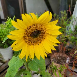 ぜんぜん ミニにならなかったミニひまわり この鉢から間引いた苗も、また別に植えて育ちました。つよいです💪 🐝可愛い友だち、見えますか?