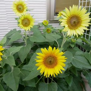 ひまわり夏物語、 種まきは7月8日でした。 開花までが短いタイプです。 レモン色と山吹色の2種類の花が混じって咲いて プランター育ちながらも 奥行きが感じられる気がします❤️