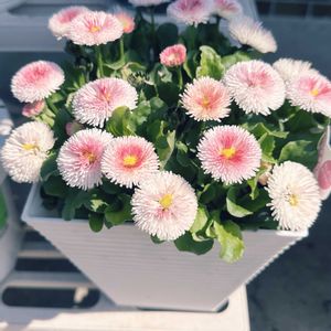 お庭にて♡ ピンクの可愛いお花デージー 先月一目惚れして買いました