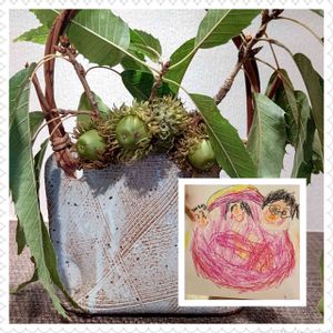 おはようございます👋😃 雨☔️は止み、風も穏やかな朝です。 先日の朝の散歩、風が強くて折れたクヌギの枝が何本か落ちてました。緑色のどんぐりも沢山落ちて・・・。持ち帰り活けました。 昨日は敬老の日、孫からのムービー🎥をスクショ。⇐じいちゃん・孫・⇒ばあちゃん🤭ばあちゃんデカイ‼️ありがとう💞 まだまだ台風の影響が心配ですね。気を付けて下さいね✨