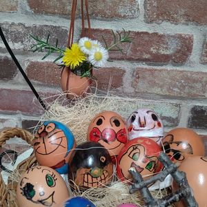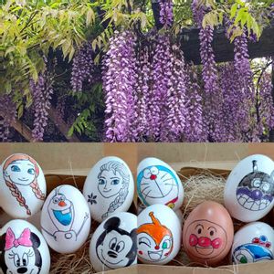 おはようございます👋😃 ・ ・ 昨日は朝から、工作🤭貯めた玉子の殻に、孫の好きなキャラクター、ドラえもんやアンパンマン。できた~✌️と、まとめて透明ラッカースプレーしたら・・・😱😭油性マジックで描いた黒い線が・・・流れた😱😭何で描けば良いの?カラー部分は絵の具。こっちは大丈夫。ガックリ😖⤵️ ・ ・ 後ろは玉子の殻に革ひも付けて、フラワーベースに。花🌼は玉子イメージしてヒメジオンとタンポポ。