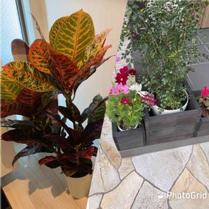 おはようございます👋😃 昨日娘から届いた写真。玄関前に植木を買った。名前を教えてと😅 左⇐「クロトン」じゃない⁉️と送ったら、そんな名前だった✨・・・と。 次に来たのが右⇒の写真😱以前からあるシマトネリコの隣。まさか、これの事⁉️ 「コスモス」と返信したら・・・。「6割そんな気がしてた」って😓残りの4割は何が候補😂 頑張れ園芸1年生‼️ちなみにコスモス🌼は孫のチョイスらしい😁 8月初めに迎えた葉鶏頭→サルビア→コスモス移り変わりの激しい玄関前です😓