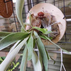 ■Platycerium veitchii🦇 ・プラティセリウム ビーチー(ベイチー) ネザーランドにしようかビーチーにしようか、悩んで決められず、結局2つともお迎え。ビニールポットで土に植えられているんですが、板付けする自信がないです。。。