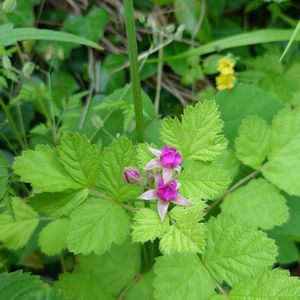 崎津教会近くでナワシロイチゴが咲いてました! 西平椿公園では名残の落花椿🌼と実がなってました😍