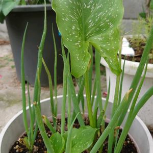 昨年お迎えしたカラーの鉢に青ネギを植えました。 植えた時はカラーは休眠中でした… 単純に忘れてたただけ😆😂🤣🤣🤣 これからどうなるかなぁ〜🤭 ポインセチアが芽吹いてます🌱
