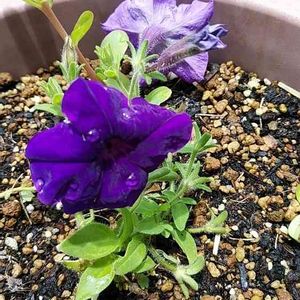 こぼれダネからの開花した💜ペチュニア ポーチュラカと同居中!