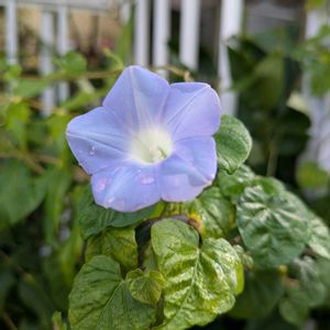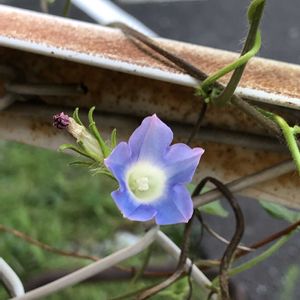 おはようございます😊 遠いですが台風の影響で雨が降ったり止んだりの日が続いています。 猛暑も辛かったけどムシムシと湿度が高いのも体に良くないですね。 早く穏やかな日々が来ないかなぁ。 庭にいつからか勝手に出てきて毎年可愛い花を咲かせる小輪の朝顔。 雨で手入れできないでいたらあっという間にオベリスクを覆ってしまいました😅 名前を調べてみたらどうやらアメリカ朝顔で駆除対象になっている植物みたいです。 花が小さくて綺麗な水色で可愛いので気に入ってましたが素性が分かるとこれは良くないですね。 どうりで生育旺盛な訳だわ💦 可愛いんだけど、雨が止んだらこれは徹底的に排除しなくちゃ。