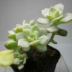 穂切りされた静夜の株。 庭での養生から生まれた子やちが、鉢に戻って、早くも一人前の姿に。 黄色く疲れ顔の母さん葉も、嬉しそう。