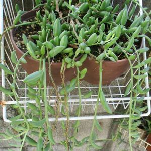 年中、外塀の吊棚で過ごす京童子(アーモンドネックレス)。鉢替えしたら、この夏の長雨で元気に生長したけど、大きくなりすぎて、ネックレスには見えないんだけど...