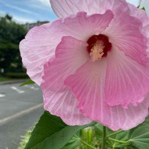 仕事場のアメリカ芙蓉が今年も咲きました🌸 直径17〜18cmはあるかな? 綺麗な花が咲いて目を惹きますね💖✨