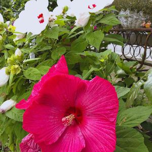 アメリカ芙蓉🇺🇸 濃いピンクも咲きました🌺🌺🌺 あとは、薄ピンクの開花を待つばかり……💕🤗