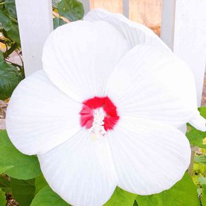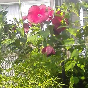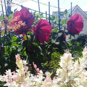 アメリカンフヨウ 今年も咲いてます。 支えの棒を立てるのが、主人の仕事 毎年、ご苦労様です。
