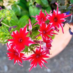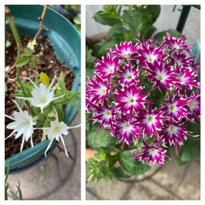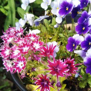 👀✨見てー! 下の花! 🌸スターフロックス🌸 もう、無くなったと思ってたけど ビオラの鉢植えの隅に 刺しといたのが なんとー!この花だったとは‼️ 普通にペチュニアかと思ってたけど 嬉しい再会です😆 ☆٩( ᐛ )۶ありがとう! 生きててくれたんだね😃 今は変顔だけど そのうち綺麗な星✩.*˚の姿になれるようにお世話します😀
