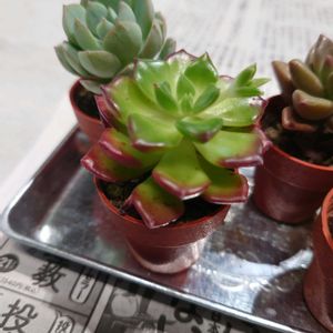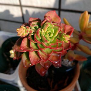紅葉がさめる前に赤色のレティジアさん💖 (実際より赤く写ってますm(_ _)m) 茎立ちしてるけど植え替えもカットもせず春はこのままにしちゃおう🤗 2枚目pic 七福神のチビちゃん🩷 子株が取れたので置いてたらそのまま根付きました😆 冬の間は大きくならないからずっとかわいいまま🥰 小さくても葉の先はピンク色でかわいい〜😍 3枚目pic みんなと一緒💞 土を変えればこのままバラさないで育てられるかなぁ🤔