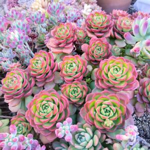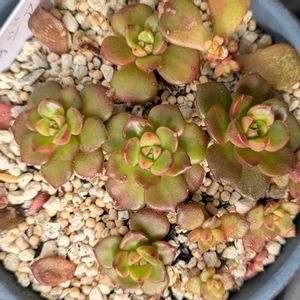 寒さにあたって綺麗に色づいている、セデベリア レティジア✨ 子株も可愛い(ノ≧▽≦)ノ💕 下葉を取ってみたら、みどりんのベビーちゃんもいました❗😃 もう少ししたら、仕立て直ししたいな🎵