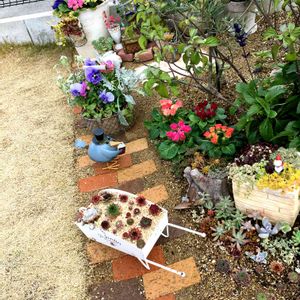 かわいい雰囲気の寄せ植えを目指し、ピンクや赤の子たちをあつめ、ちまちま寄せをしました✨