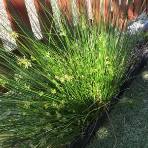 今朝撮ったpicなんですが 私がここに住む前からずーとここにいる雑草!?かと.... 何故か抜くことが出来ずにここにいます。 葉が意外に綺麗だったり... いったい何という植物何でしょう? イグサと教えていただきました ありがとうございます😊 サンカクイではなかったです。切り口も丸かったです。