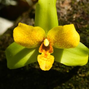 「リカステ・レオ”リオベル”」 リカステの園芸品種 萼片は黄緑で花弁は黄色 咲くやこの花館熱帯雨林植物