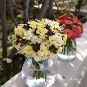エリシマム レヤ レモングロー びよーんと伸びて来たので切りました✂️ エリシマムって切り花にしてまとめて生けるとピンクッションみたいにまんまるになってかわいいです💕 1枚目の後ろは友情出演のエリシマム スプリングパーティー 2枚目の後ろは何故かタテにびよーんとして来たヒューケラ フリリィ🌱