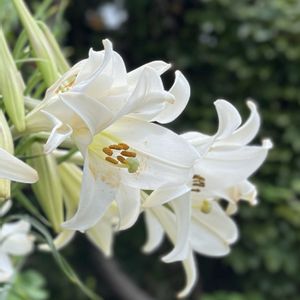 カサブランカです。 自然大好き派😘、兼園芸🧑🌾もやっています派です。 暑い🥵日が続きこの子が咲き始めました。花が大きいので開花を見落とすことはありませんが、匂いでも開花をアピールしてきます。 やはりこの花を見ると郷ひろみを思い出します。歌詞のような"洗った髪の香り"なのかな?